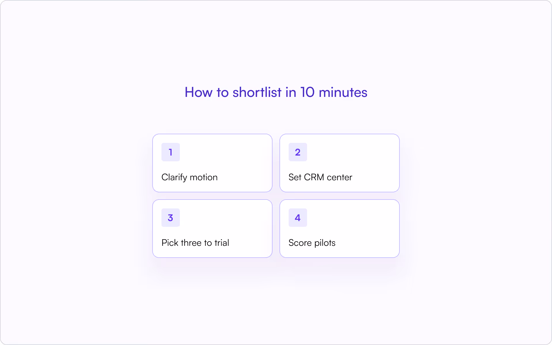 If that sounds like your roadmap — faster time-to-value, fewer admin cycles, and motions your partners will actually use — the next step is turning options into a shortlist your team can pilot. Use the quick framework below to move from “interesting” to “in production” without stalling in analysis: