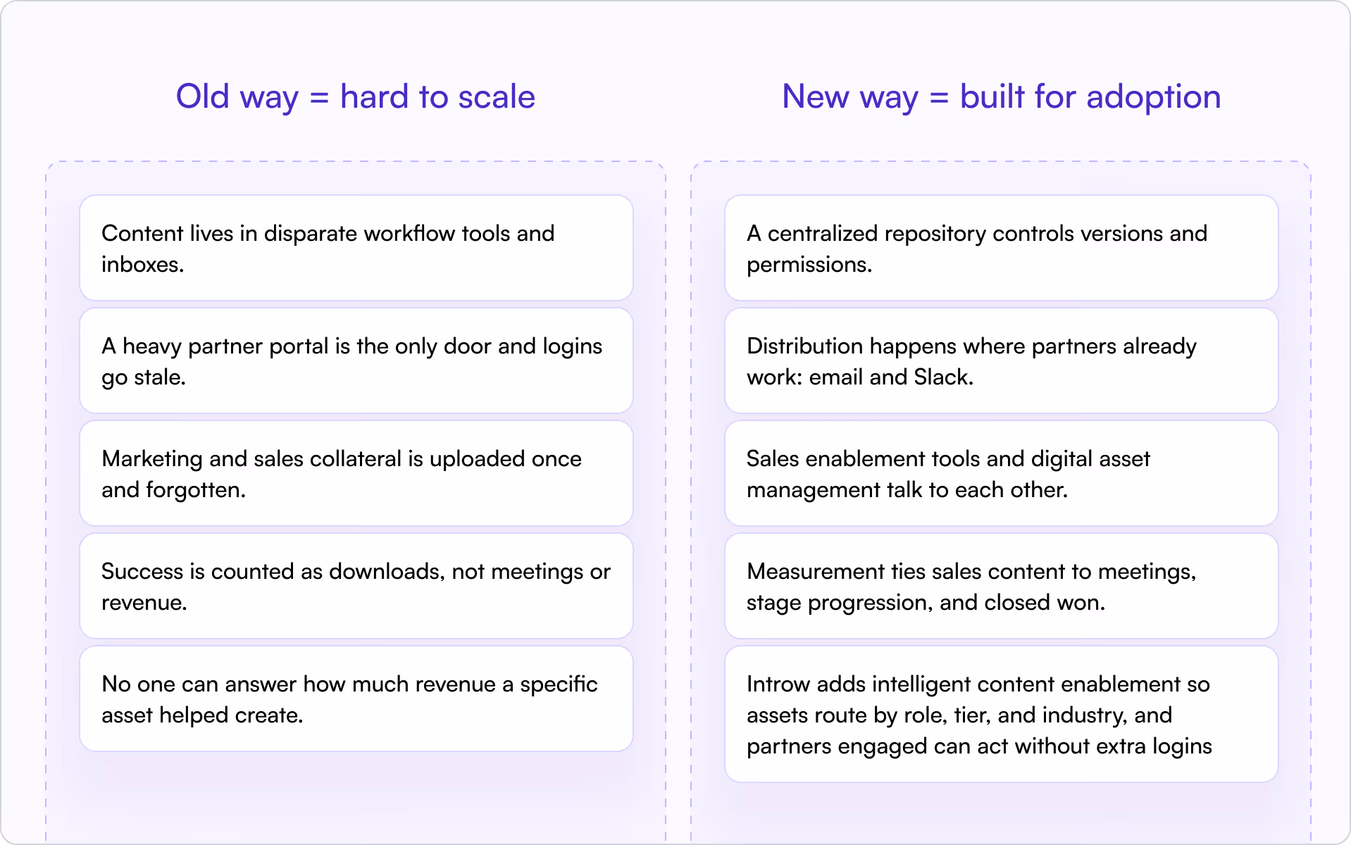 Most partner content follows a predictable path: it gets created, uploaded to a portal, and never touched again. Partners don’t know it exists, can’t find it when they need it, or discover it’s outdated the moment they try to use it.