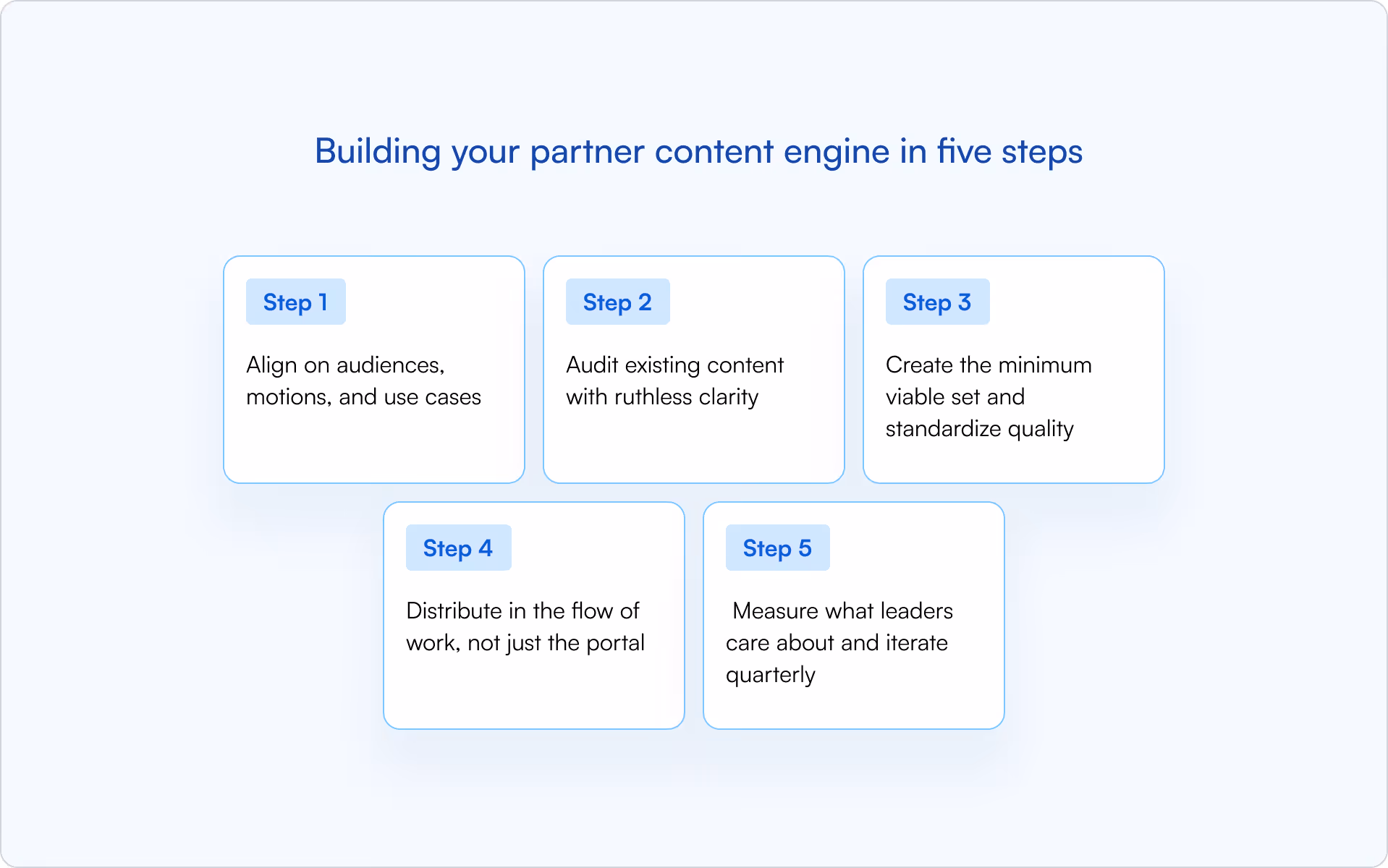 Survey partners on what content they need and what’s missing. Content created without partner input often goes unused because it solves the wrong problem.