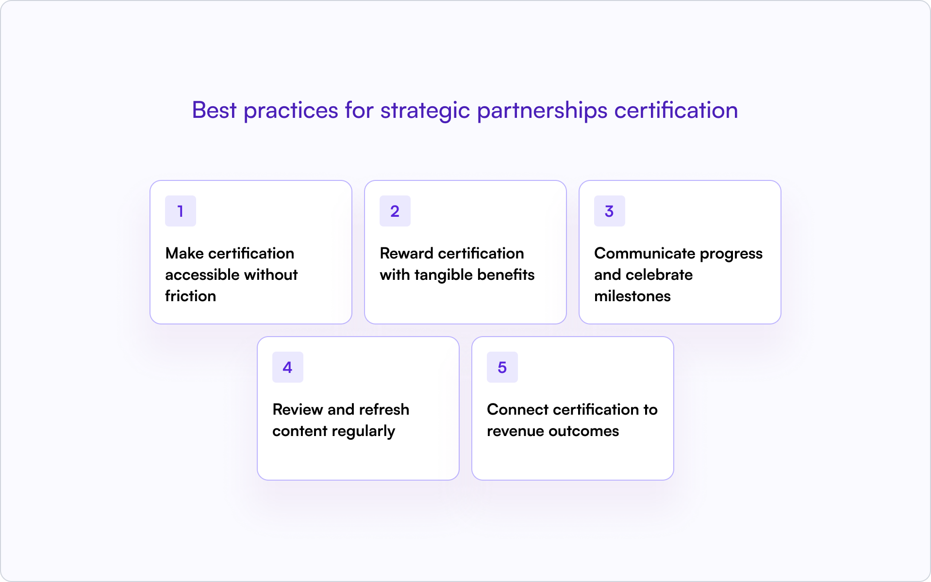 Recognition reinforces behavior. When a partner earns certification, celebrate it publicly (when appropriate). It signals that certification matters and creates social proof inside the ecosystem.