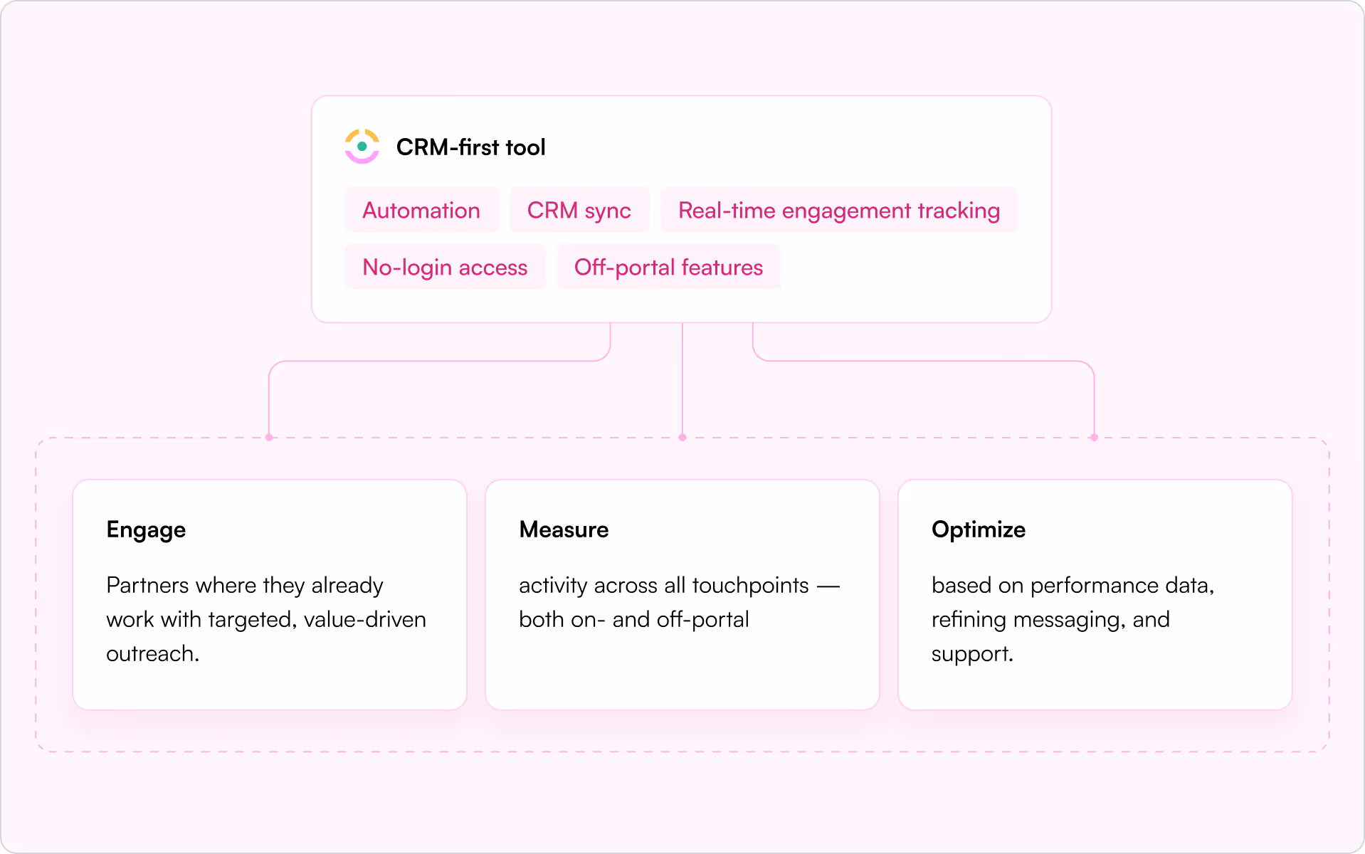 Dann erzielen Sie Ergebnisse mit einem Partner-Engagement-Framework, das auf den Schritten „Engagieren > Messen > Optimieren“ basiert: